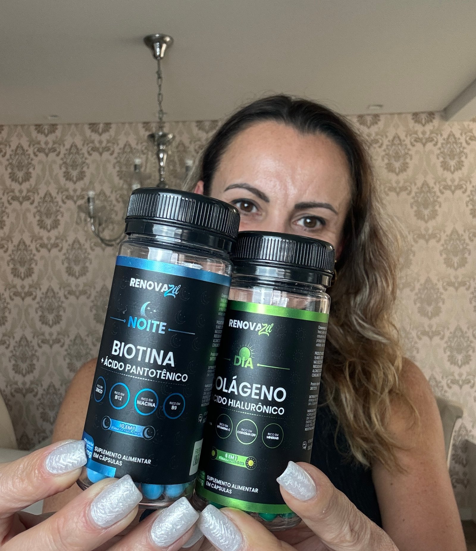 “Comprei pra mim e minha mãe, ela não gostava dos pés de galinha e flacidez, tentamos esse produto e estamos muito felizes com o resultado do renovazil, esse combo é fantástico”
