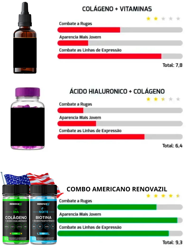 Fizemos um teste de laboratório com Renovazil e seus concorrentes mais vendidos aqui no Brasil para assim, avaliar seus resultados estéticos no mercado.
